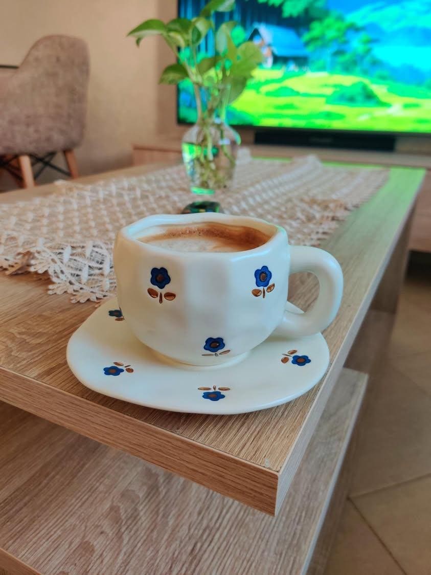 Delicate and dreamy, this mug features soft blue floral accents for a cozy and charming vibe.